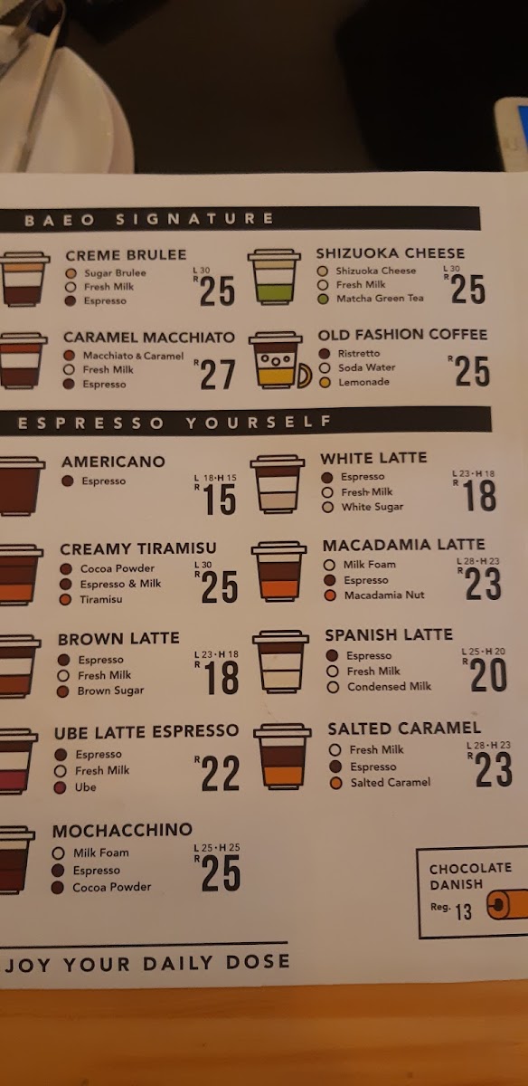 Baeo Coffee and Tea Menu